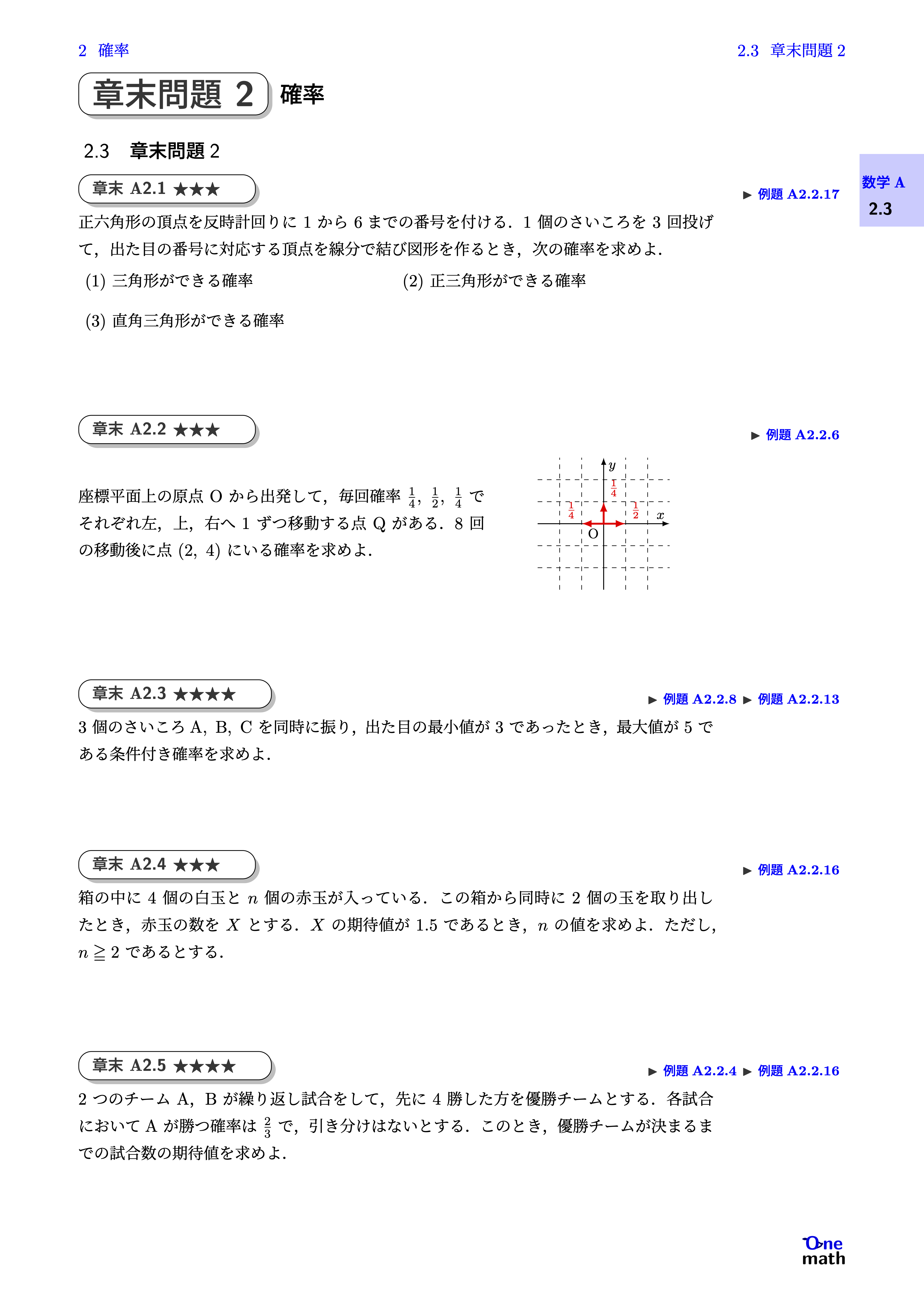 【数学A】例題2.2.6:反復試行の確率(ランダムウォーク)(One More)★★★