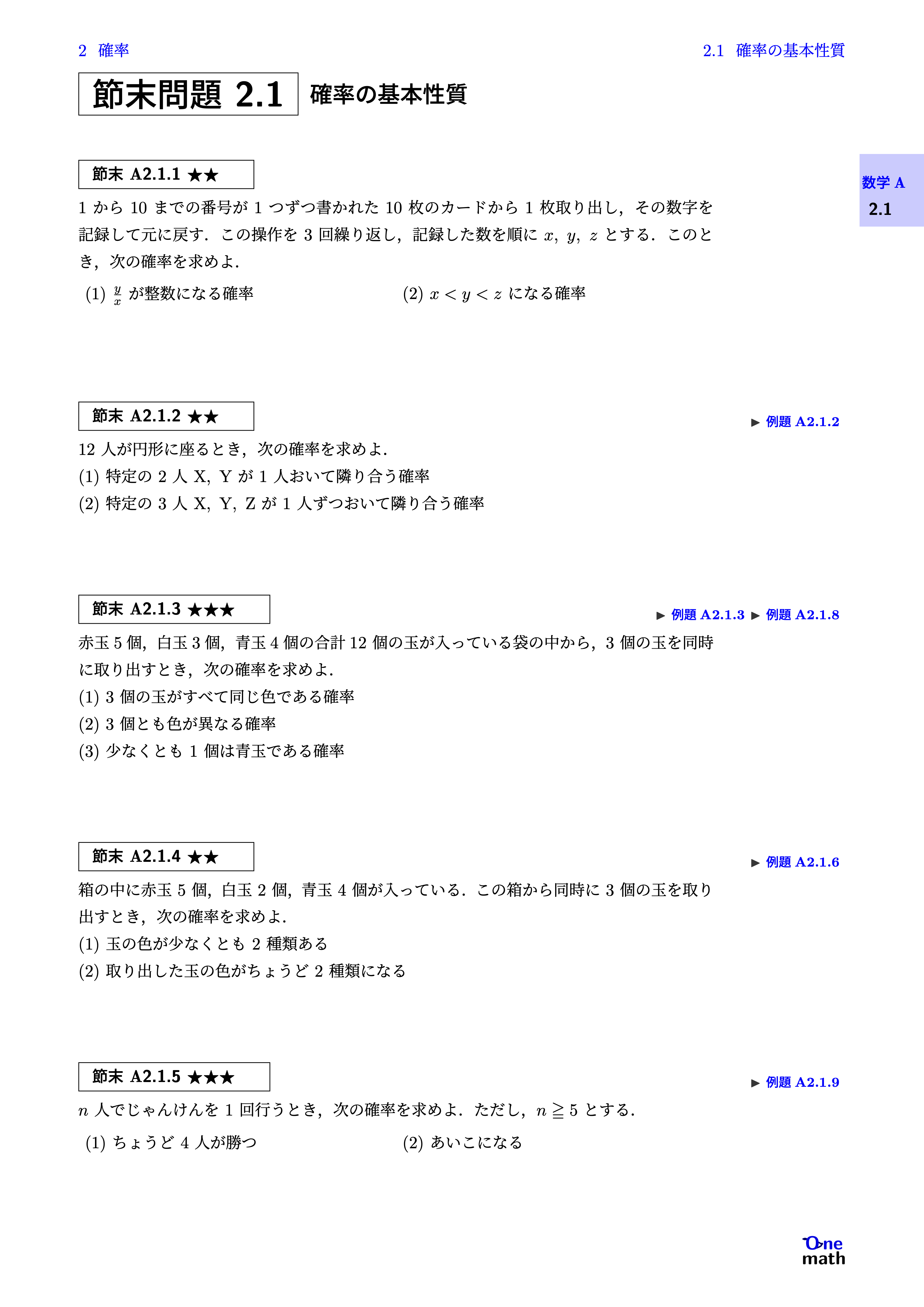 【数学A】例題2.1.3:組合せと確率(One More)★