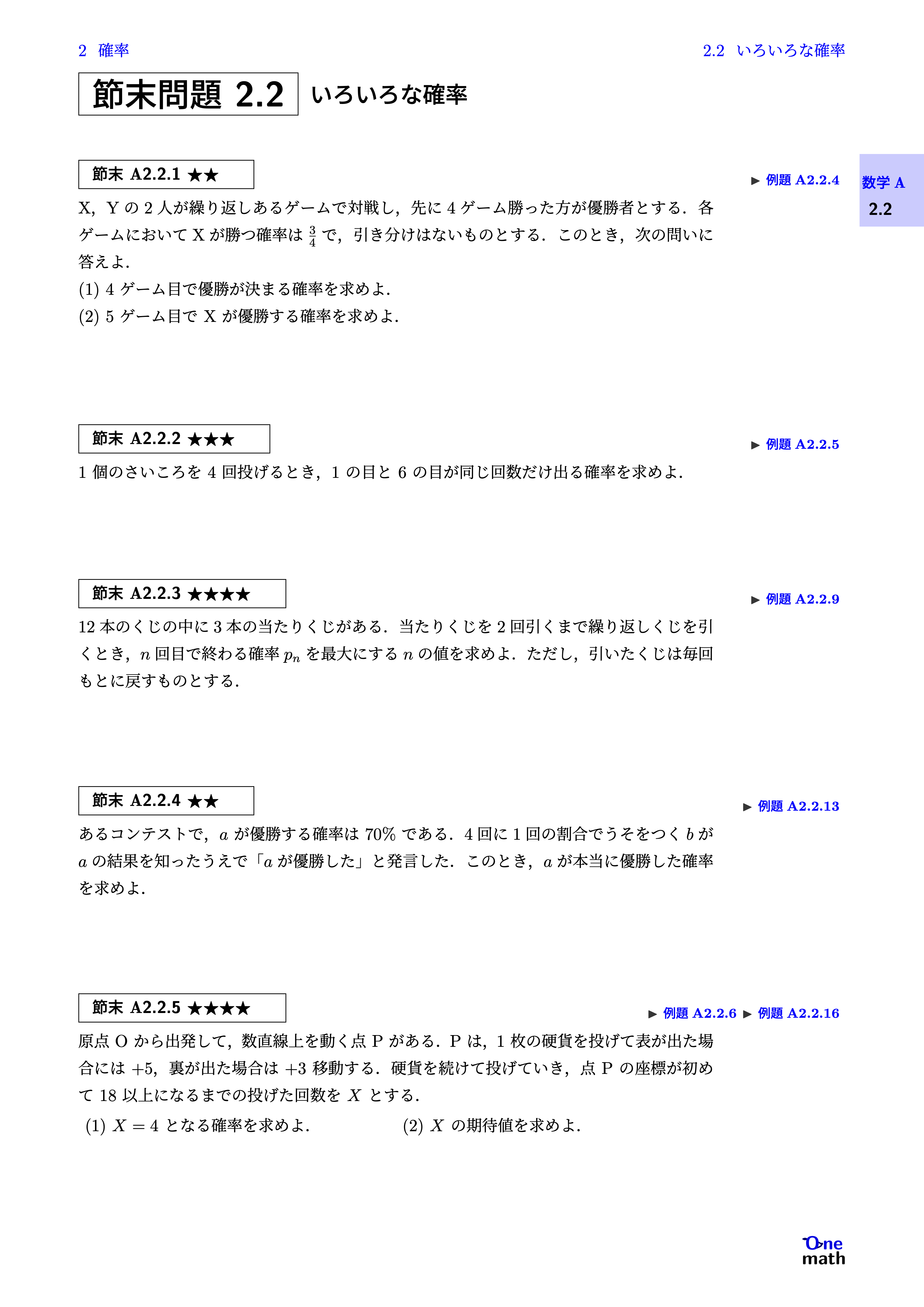 【数学A】例題2.2.4:反復試行の確率2(One More)★★