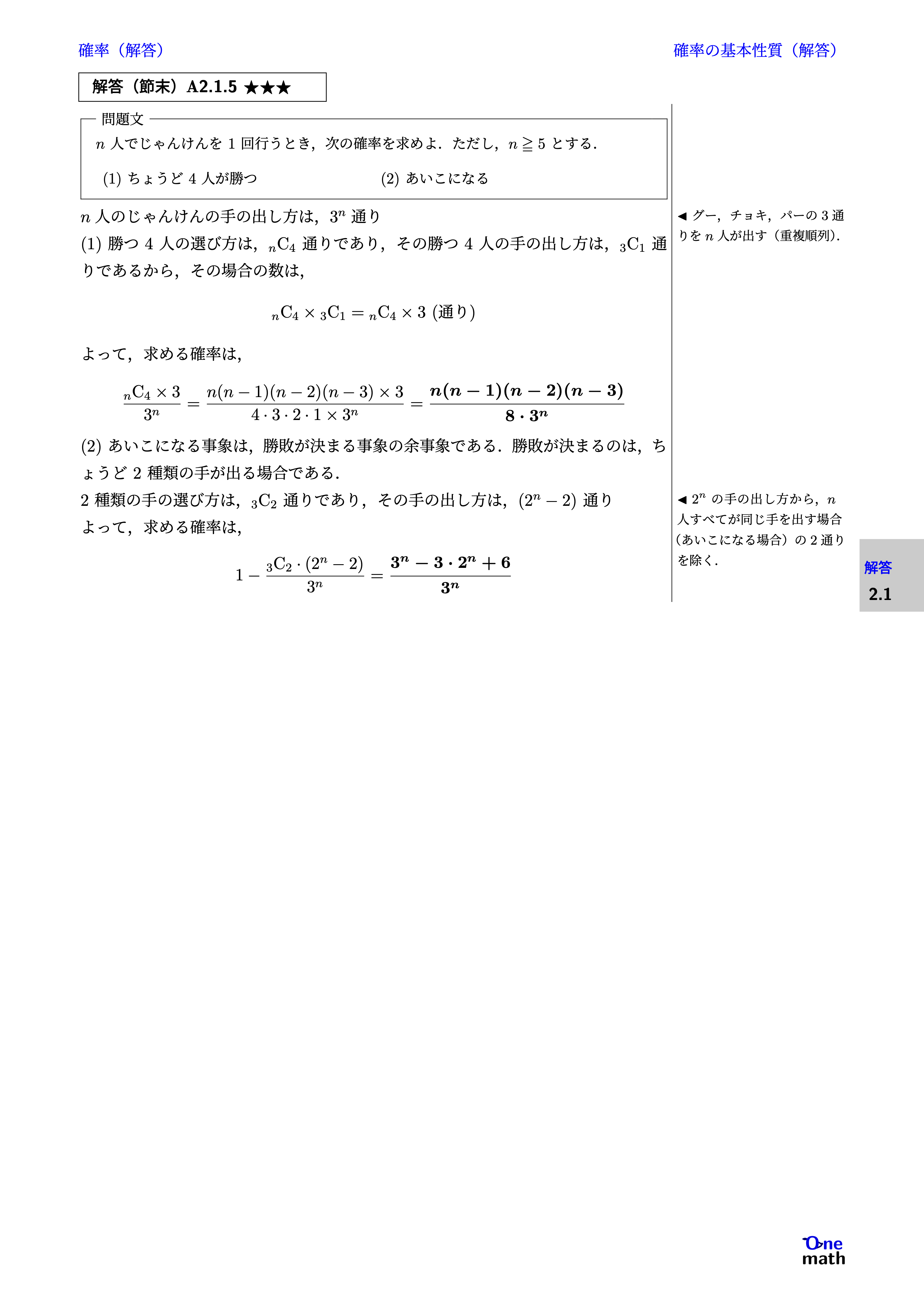 【数学A】例題2.1.9:じゃんけんの確率(One More)★★★