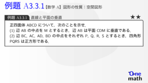【数学A】例題3.3.1:直線と平面の垂直(One More)★★