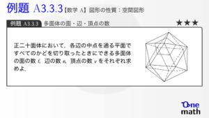 【数学A】例題3.3.3:多面体の面・辺・頂点の数(One More)★★★