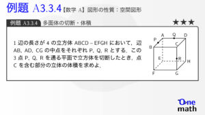 【数学A】例題3.3.4:多面体の切断・体積(One More)★★★
