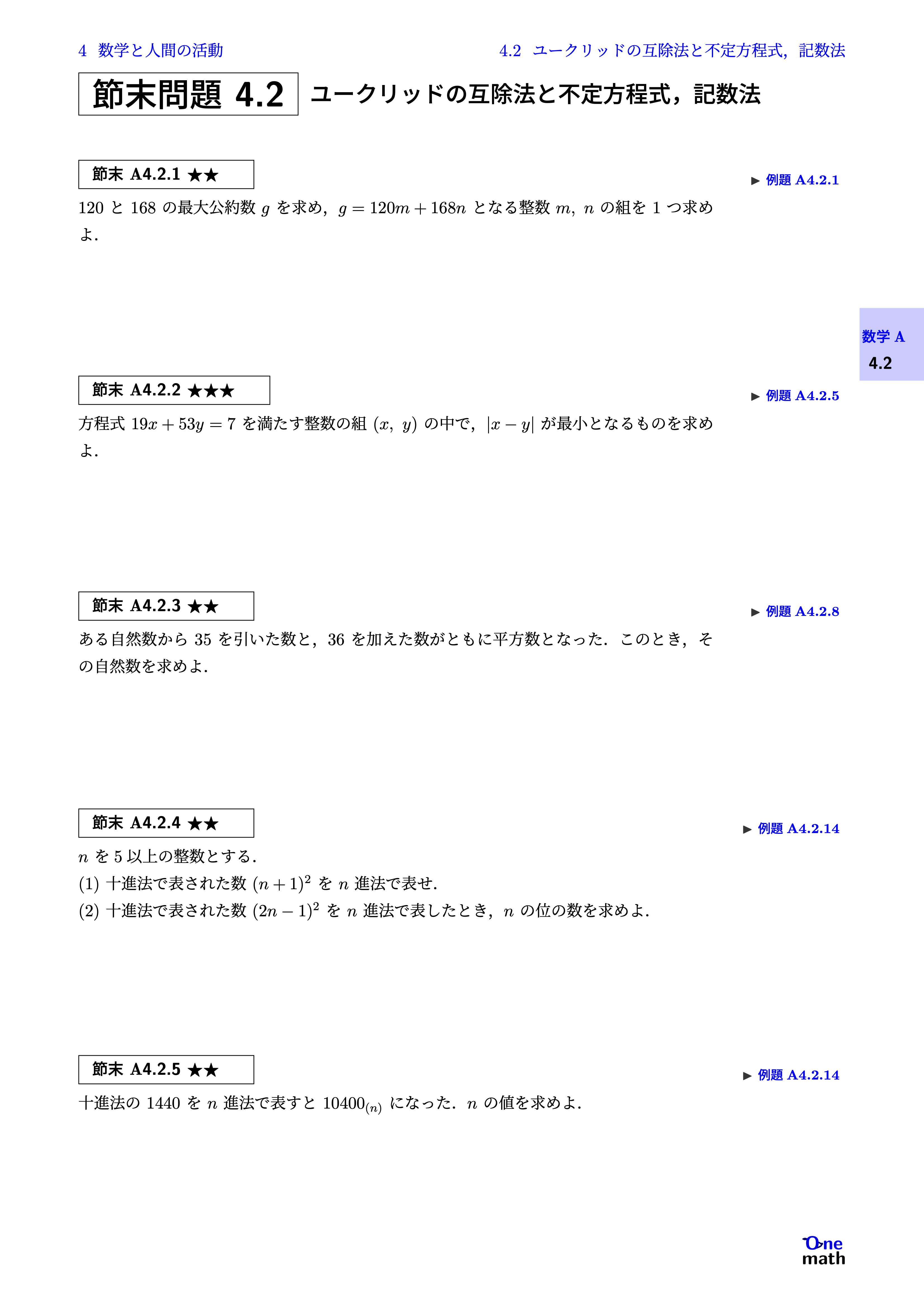 【数学A】例題4.2.1:ユークリッドの互除法(One More)★