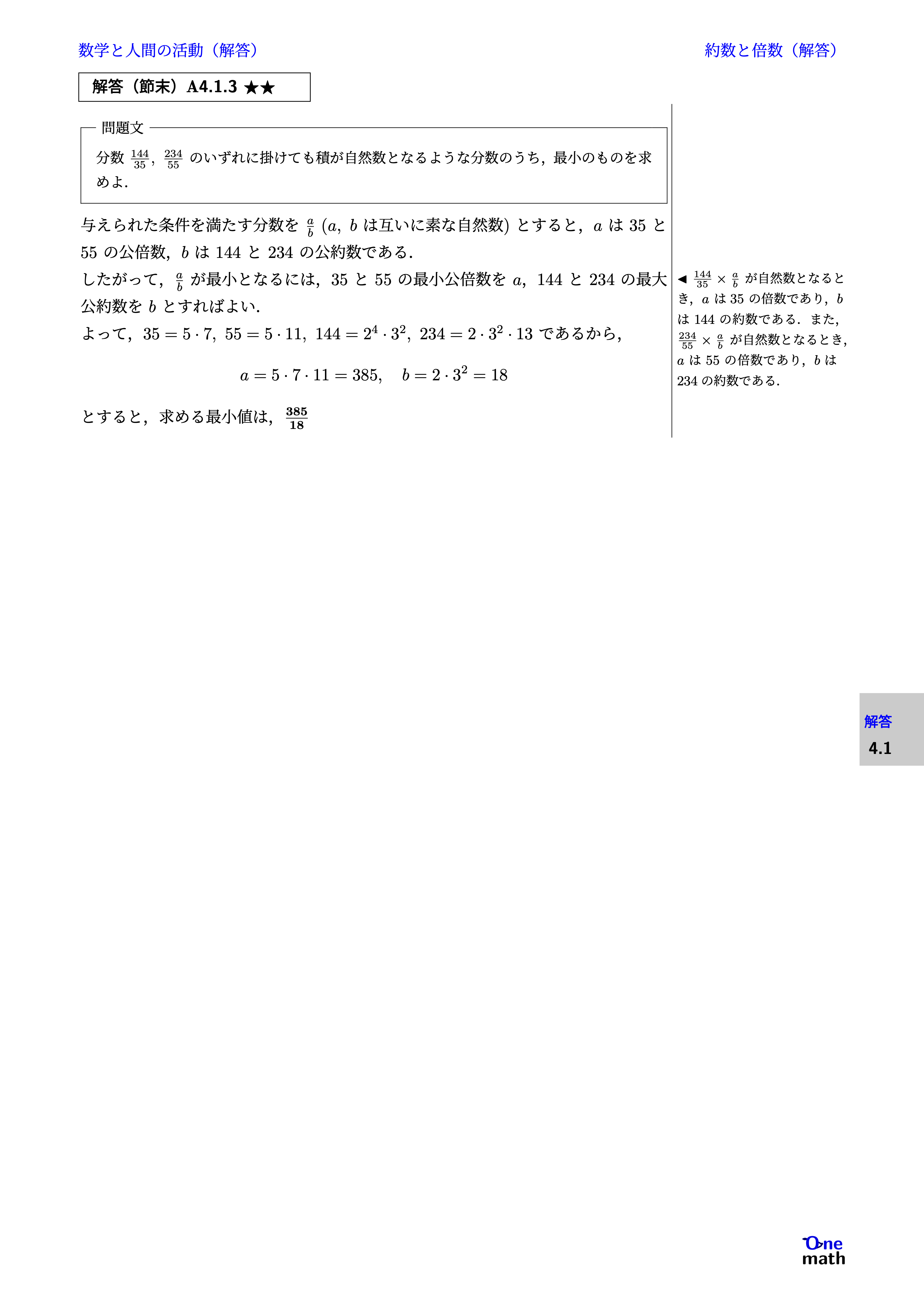【数学A】例題4.1.5:最大公約数・最小公倍数1(One More)★