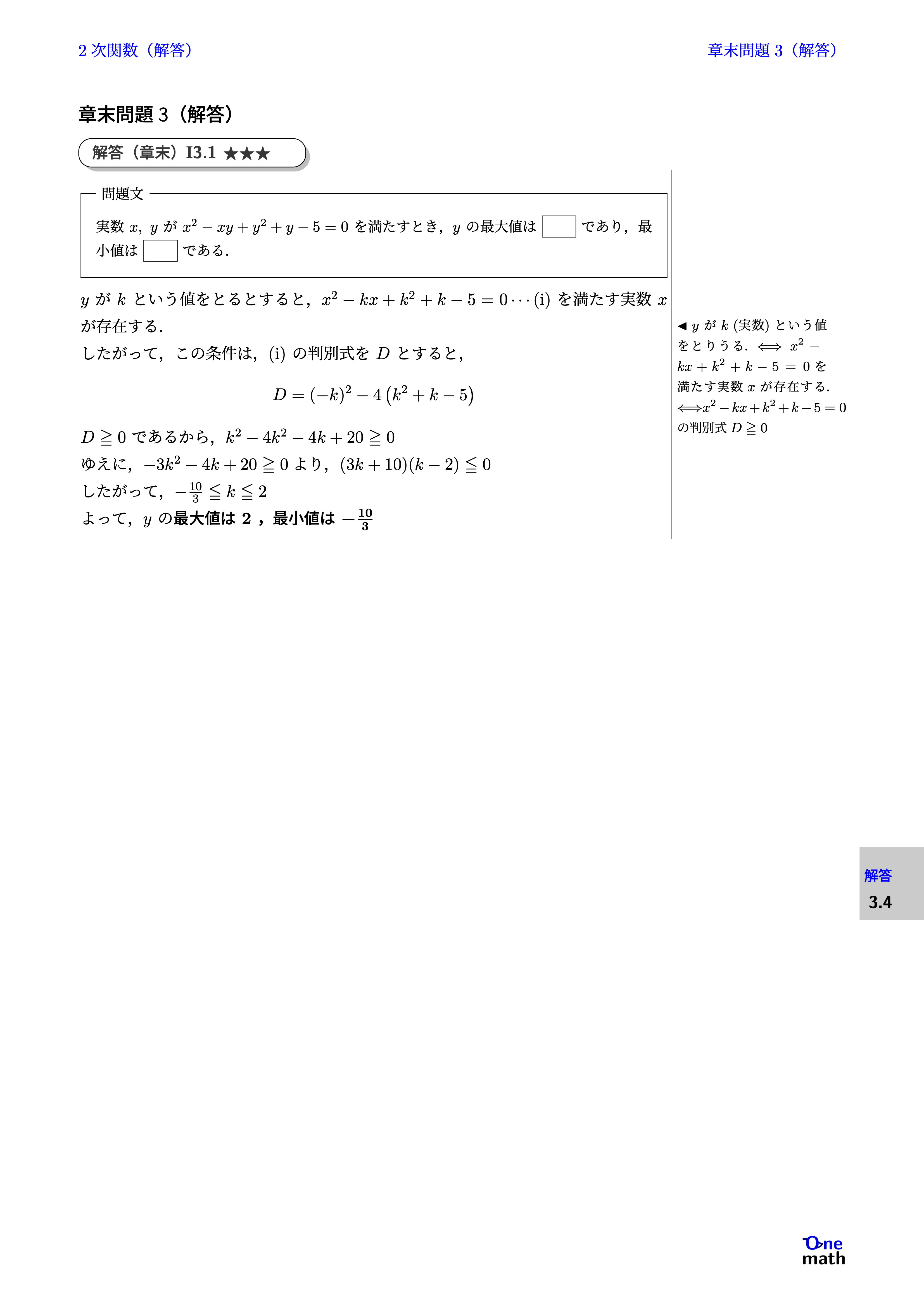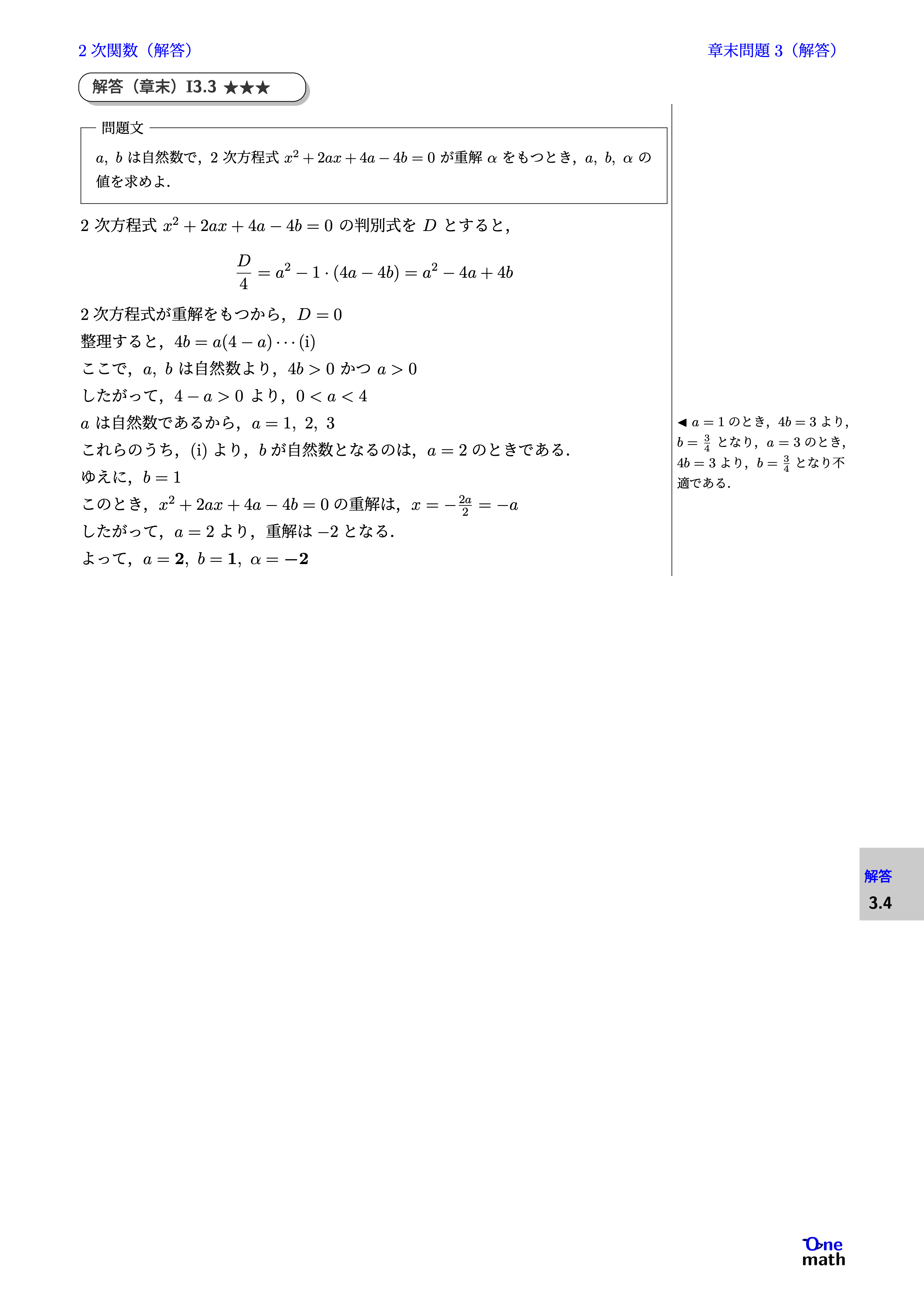 % 解答(章末)I3.4