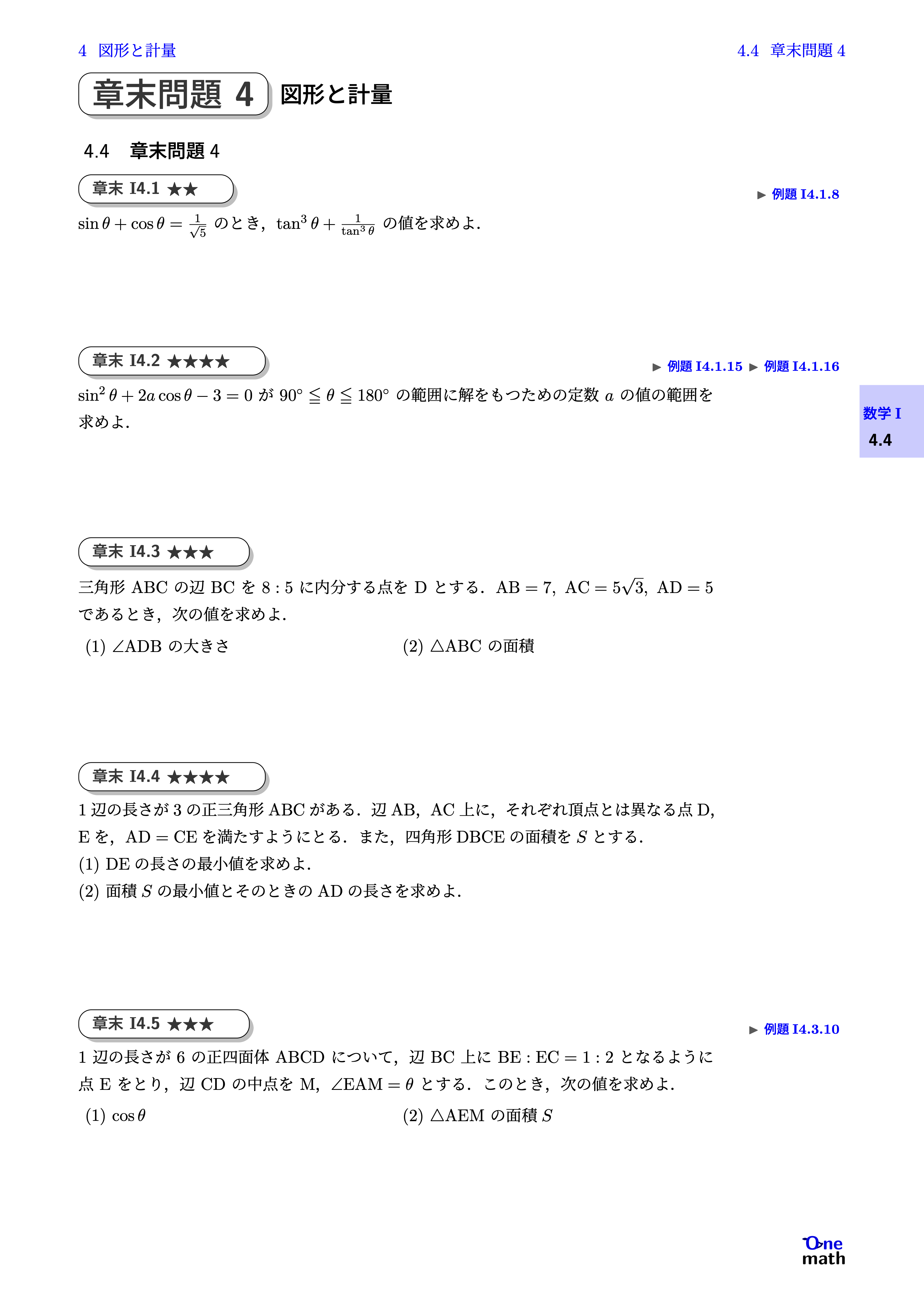【数学I】節末問題と章末問題4章,図形と計量