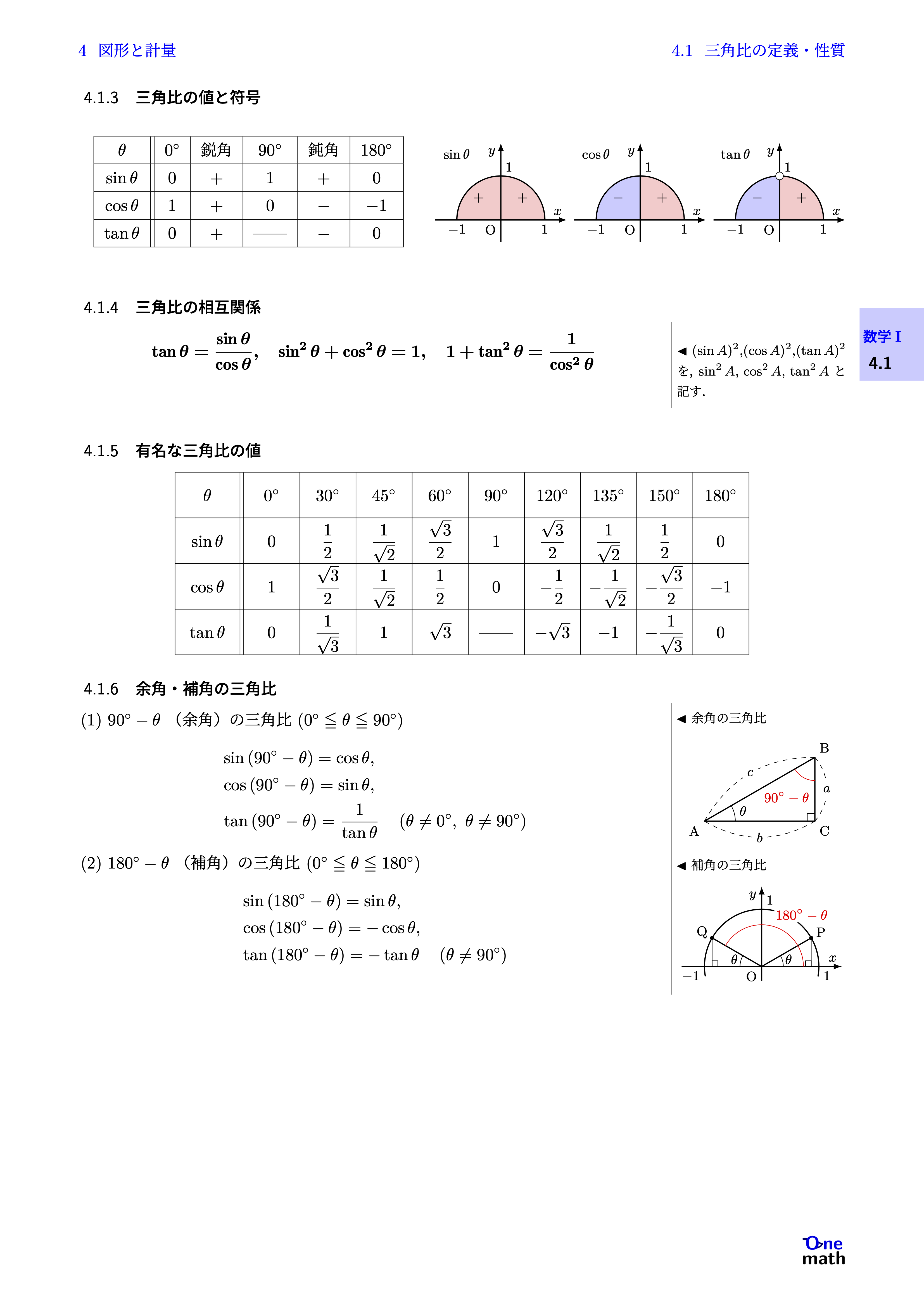% 基本事項I4.1.3:三角比の値と符号(One More)