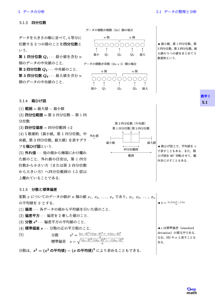【数学I】基本事項5章,データの分析